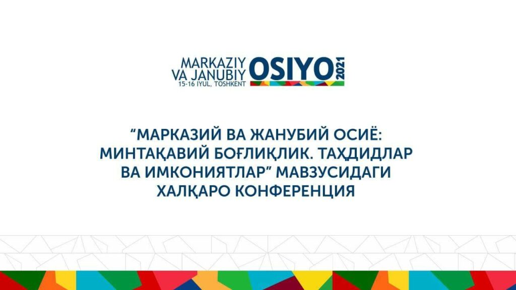 15-16-iyul kunlari Toshkent shahrida «Markaziy va Janubiy Osiyo: Mintaqaviy bog‘liqlik. Tahdid va imkoniyatlar» mavzusida yuqori darajadagi Xalqaro konferensiya bo‘lib o‘tadi.