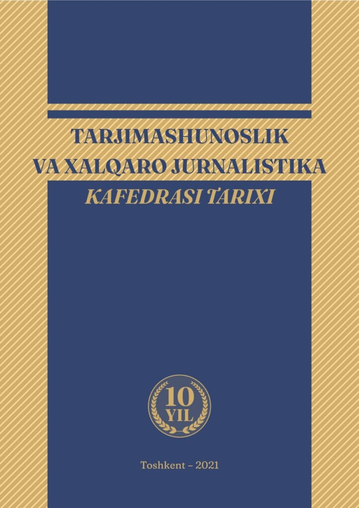 TDSHUning alohida muassasa sifatida ish boshlaganining 30 yilligi, sharq tarjimashunosligining asosiy markazi, TDSHUning eng kenja bo’limlaridan biri – “Tarjimashunoslik va xalqaro jurnalistika” kafedrasining tashkil etilganiga yaqinda 10 yil to’lishi munosabati bilan ushbu kafedra dotsenti X.Hamidovning “Tarjimashunoslik va xalqaro jurnalistika kafedrasi tarixi” nomli risolasi TDSHU rektori Gulchehra Rixsiyeva mas’ul muharrirligi, PhD. Nilufar Xodjayeva va f.f.n., dots. Ergash Ochilovlarning taqrizlari ostida chop etildi.