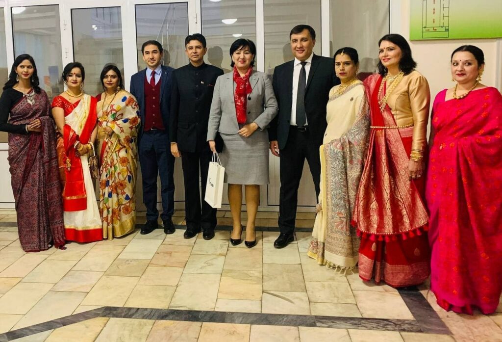 Hindiston Respublikasining O‘zbekistondagi Favqulodda va Muxtor elchisi Manish Prabhatning taklifiga binoan, ayni damda, Toshkent davlat sharqshunoslik universiteti rektori Gulchehra Rixsiyeva va Xalqaro hamkorlik bo‘yicha prorektori Elyor Mahmudov “Sari-matoga to’qilgan she’riyat” tadbirida ishtirok etmoqdalar.