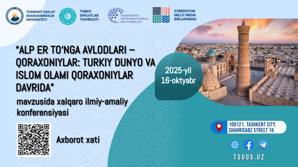 2025-yil 16-oktyabr kuni Toshkent davlat sharqshunoslik universitetida Turkiy davlatlar tashkiloti, Toshkent xalqaro universiteti va O‘zbekiston milliy media birlashmasi bilan hamkorlikda “Alp Er To‘nga avlodlari – Qoraxoniylar: Turkiy dunyo va Islom olami Qoraxoniylar davrida”  mavzusida xalqaro ilmiy-amaliy konferensiyasi tashkil qilinmoqda.
