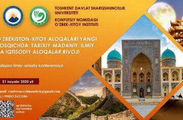 Ministry of Higher and Secondary Special Education of The Republic of Uzbekistan Tashkent State University of Oriental Studies Informational letter  On November 21, 2020, the Tashkent State University of Oriental Studies will hold an international scientific and practical conference “Uzbekistan-China: Development of Historical, Cultural, Scientific and Economic Ties.” Organizers of...