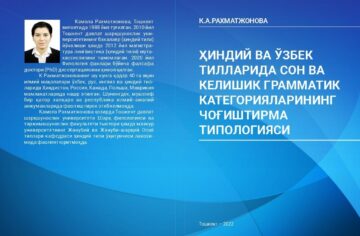 Toshkent davlat sharqshunoslik universiteti qoshidagi Sharq madaniyati va merosini tadqiq etish ilmiy-tadqiqot markazi tomonidan Kamola Raxmatjonova muallifligida “Hindiy va o‘zbek tillarida son va kelishik grammatik kategoriyalarining chog‘ishtirma tipologiyasi” nomli monografiya nashr qilindi. Ushbu kitob hindiy va o‘zbek tillari materiallari misolida ot so‘z turkumi son va kelishik kateg...