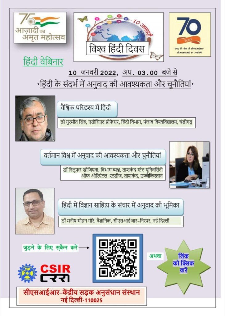 TDSHU “Tarjimashunoslik va xalqaro jurnalistika” kafedrasi mudiri Xodjayeva Nilufar Bekmuratovna Hindistonning Central Road Research Instituti tomonidan “Xalqaro Hindiy tili kuni” munosabati bilan tashkillashtirilgan online konferensiyada “Zamonaviy dunyoda tarjima zarurati va muammolari” ma’ruzasi bilan ishtirok etdi.