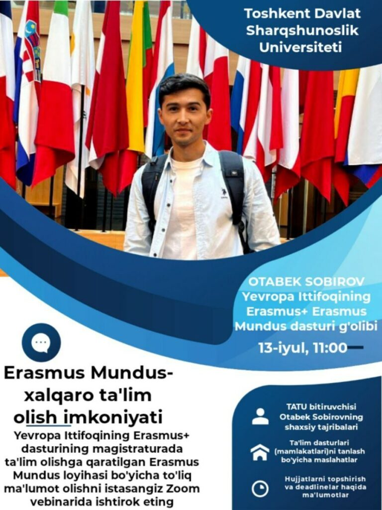 (Uzbek) Erasmus+ dasturi orqali magistraturada o’qish imkoniyati haqida vebinar