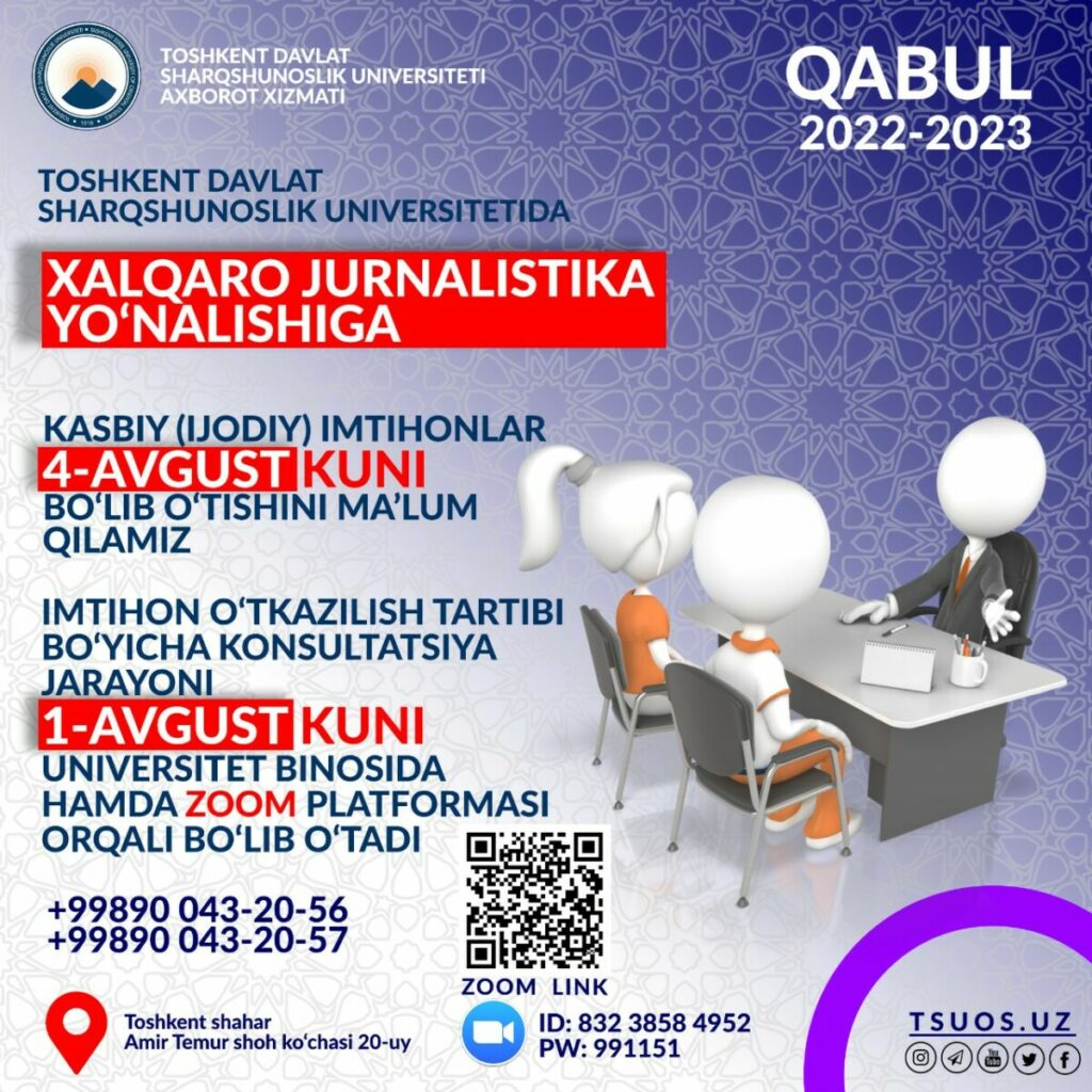 (Uzbek) Kasbiy (ijodiy) imtihon kunlarini ma’lum qilamiz