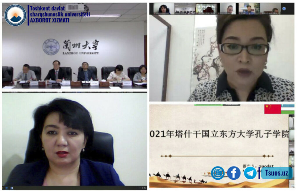 The next annual meeting of the Founding Council of Lanzhou University was held on May 10. The meeting discussed the annual reports of the members of the Council – the Confucius Institutes of Kazakhstan, Georgia and the Uzbek-Chinese Confucius Institute at TSUOS. It was attended by the rector of TSUOS Rikhsieva with an introductory report and the director of the Confucius Institute S. Nosirova with a presentation of the annual report.