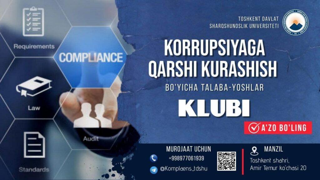 As you know, the Department of Management of the “Compliance Control” System for Combating Corruption was established at TSUOS. We inform you that the anti-corruption student club has started its activities under this department.