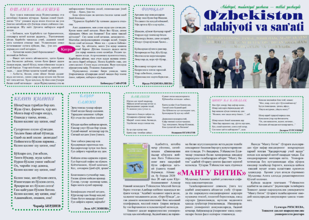 “O‘zbekiston adabiyoti va san’ati” gazetasining 2023- yil 10- mart sonida  O‘zbekiston xalq yozuvchisi, professor Muhammad Ali boshqarayotgan “Mangu bitik” (1-6 betlar) – Toshkent davlat sharqshunoslik universiteti talabalarining adabiy to‘garagi a’zolari ijodidan namunalar chop etildi.
