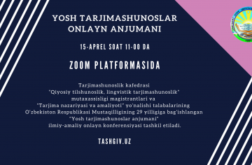 The annual traditional scientific-practical conference of masters of “Comparative Linguistics, Linguistic Translation” and students of “Theory and Practice of Translation” dedicated to the 29th anniversary of Independence of the Republic of Uzbekistan,the main conference is held remotely. The purpose of the conference is the history of translation studies,...