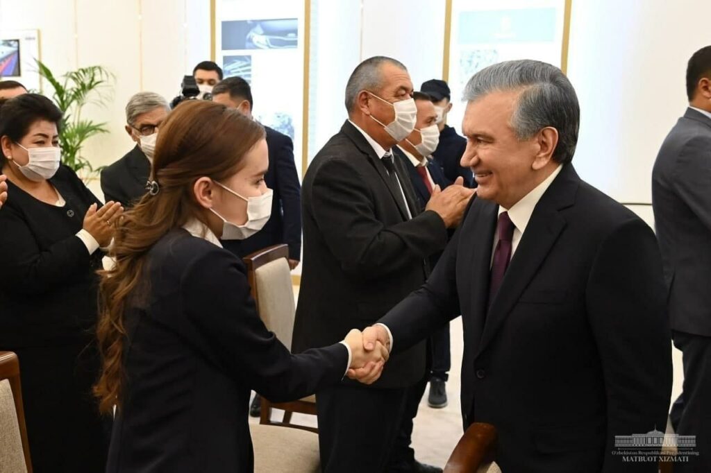 On October 21, 2021, a meeting with the President of the country was held at the conference hall of the regional administration dedicated to the opening of the water treatment and transmission facility “Uzunbulak” in Jizzakh region. The meeting was also attended by Zuhra Yulchiyeva, a student of the Faculty of Korean Studies at the Tashkent State University of Oriental Studies.