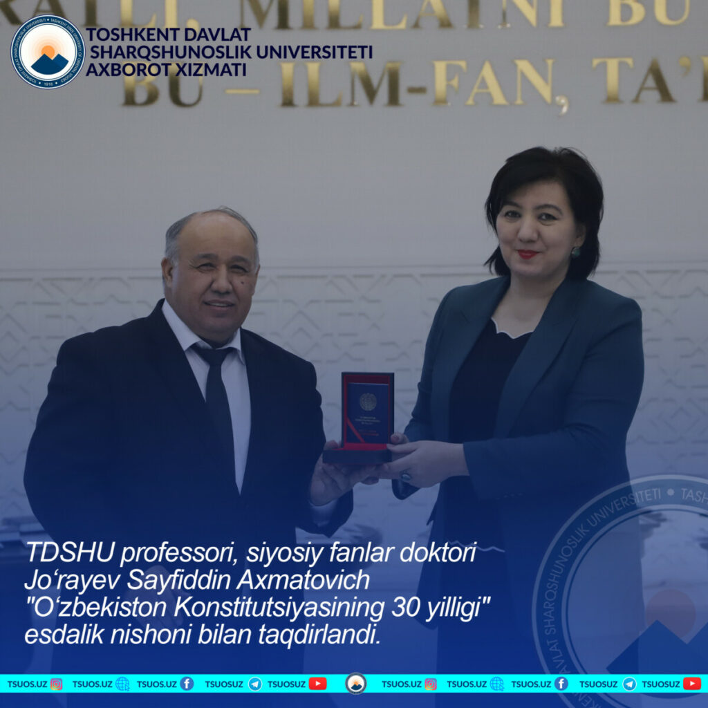(Uzbek) TDSHU ustozlari “O‘zbekiston Konstitutsiyasining 30 yilligi” esdalik nishoni bilan taqdirlandi.