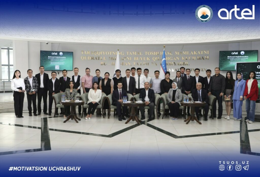 The next “Motivational meeting” was held in TSUOS within the framework of “Youth Academy Forum” with the participation of the head of department of “Artel” company Behzod Hojiahmedov. At the beginning of the meeting, the Artel company’s activities were introduced and information about future work was given to those gathered. At the meeting held on the basis of an open discussion, the students received answers to their interesting questions.