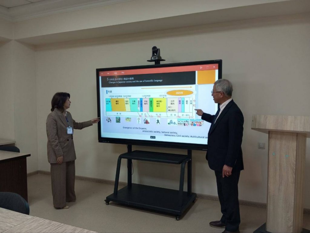 As part of the visit, Professor Masaki Ono delivered a lecture at the TSUOS Higher School of Japanese Studies on the topic: “Changes in the Mechanisms of Expressing Politeness in the Japanese Language.”