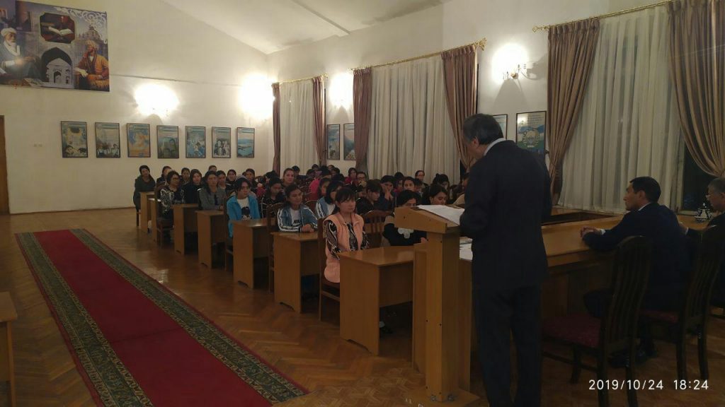 On October 24, 2019, a round table discussion was held at the Students’ Hostel of the Tashkent State Institute of Oriental Studies on the topic “The role of youth in elections” as part of the “Elections-2019” event. The conversation was attended by the head of the Department of Social Sciences, Doctor of Political Sciences U. Idirov, Deputy Dean of the Faculty of Oriental Philology Sh. Aripov, Chairman of the Student Council S. Salimov and students living in the Students’ hostel.