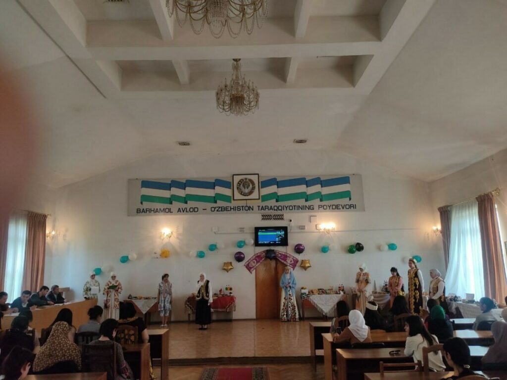 In order to ensure the implementation of the order of the Minister of Higher Education, Science and Innovation of the Republic of Uzbekistan No. 466 dated October 18, 2023, and paragraph 3 of the plan of measures developed in connection with the organization of the National Values Day, on the 2nd of this year On November 10, an exhibition of “National costumes” was held in the student residence.