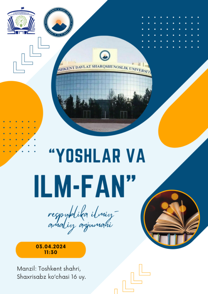 On April 3, 2024 at 11:30 in the conference hall of the Faculty of Economics, Politics and Tourism of Eastern Countries of the Tashkent State University of Oriental Studies, the traditional republican scientific and practical conference “Youth and Science” of doctoral students, independent applicants, master’s students and bachelors will be held in order to further intensify the ongoing work to support the initiatives of talented youth, further strengthening the potential of existing scientific schools and developing their innovative potential.