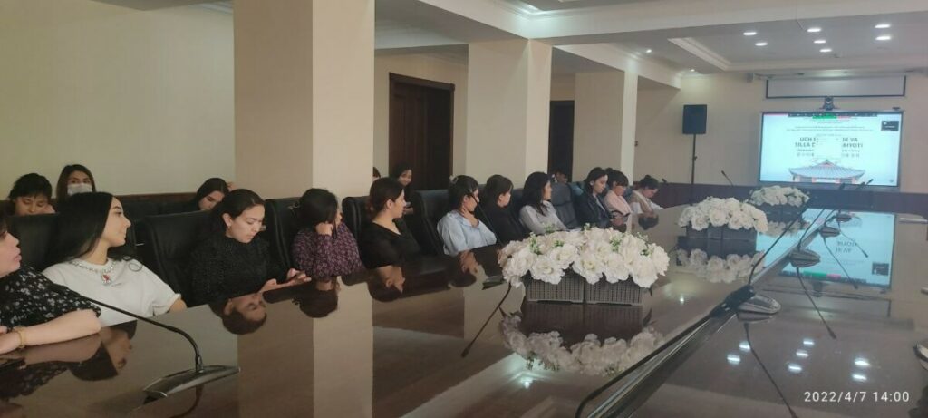 7-aprel kuni Toshkent davlat sharqshunoslik universiteti Koreyashunoslik fakultetida „Koreya haftaligi» doirasida fakultetning Koreys filologiyasi kafedrasi ustozlari tomonidan tayyorlangan media darsliklar taqdimoti boʻlib oʻtdi. Koreys filologiyasi kafedrasi mudiri Saydazimova Umida Toʻraxanovna boshchiligida Hidoyatova Aziza, Dadaboyeva Dilrabolar tomonidan „Uch podsholik va Silla davri adabiyoti “ darsligi, Mirsharipova Barno tomonidan esa «Koreys frazeologizmlarining milliy madaniy xususiyatlari» media darsliklari taqdimot ishtirokchilari xukmiga havola etildi. Tadbir davomida media darslik mualliflari ushbu materiallarning mazmun-mohiyati, qamrovi hamda  koreys tili va adabiyoti oʻrganishda media darsliklarning ahamiyati xususida oʻz-firk mulohazalarini bildirib oʻtdilar.
