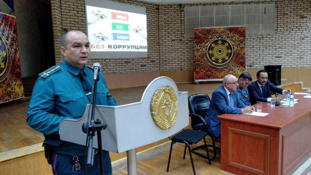 Joriy yilning 27 sentyabr kuni Toshkent davlat sharqshunoslik institutida “Korrupsiya – milliy xavfsizlikka tahdid” mavzusida ma’naviy-ma’rifiy uchrashuv bo‘lib o‘tdi. Mazkur tadbirda Toshkent davlat sharqshunoslik instituti rektori A.Mannonov, Mirobod tuman prokuroturasi katta yordamchisi M.Niyozmetov, Mirobod tuman prokuroturasi yordamchisi Sh.Shomirzaev, Mirobod tuman prokuroturasi yordamchisi I.Bo‘riev, Mirobod tuman Ichki Ishlar profilaktika inspektori A.Rejamatov, Mirobod tuman Ichki Ishlar profilaktika inspektori A.Yo‘ldoshaliev, Mirobod tuman Ichki Ishlar boshqarmasi boshlig‘i podpolkovnik M.Miralievlar hamda institut prorektorlari, fakultet dekanlari va ularning muovinlari, 20 nafar professor-o‘qituvchilar hamda 400 nafar talaba-yoshlar ishtirok etdilar.