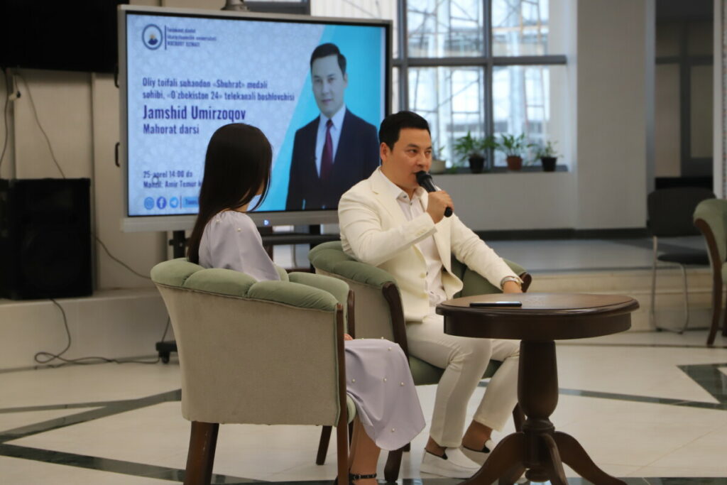 Toshkent davlat sharqshunoslik universitetida 25-aprel kuni oliy toifali suhandon «Shuhrat» medali sohibi, «O’zbekiston 24» telekanali boshlovchisi Jamshid Umirzoqov ishtirokida davra suhbati bo’lib o’tdi.