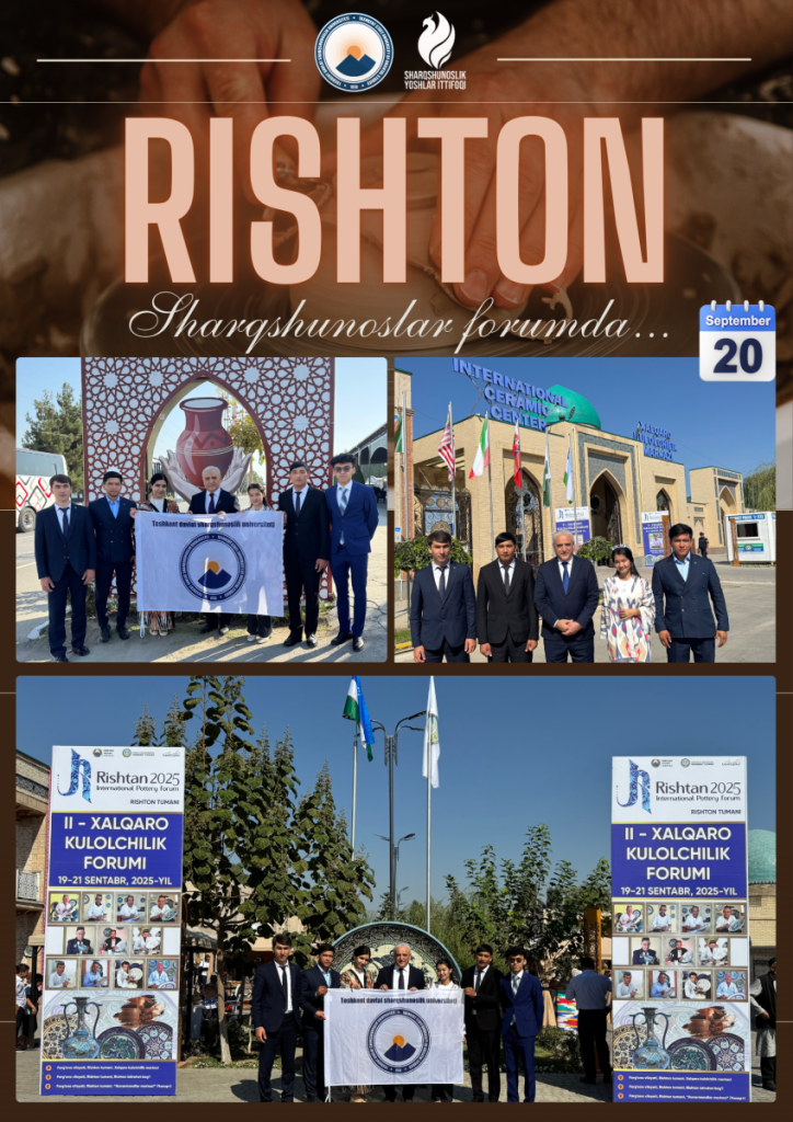 Farg‘ona vodiysining eng qadimiy va betakror shaharlaridan biri bo‘lgan Rishton yana bir bor o‘zining boy tarixiy merosi va amaliy san’atdagi o‘rnini namoyon etdi. 2025 yilning 20 – 21- sentabr kunlari bu yerda II Xalqaro kulolchilik forumi bo‘lib o‘tdi.