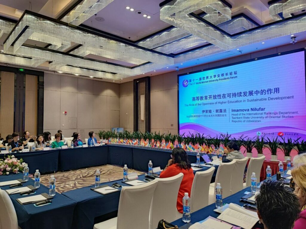 Делегация во главе с ректором Ташкентского государственного университета востоковедения Гульчехрой Рихсиевой, находящейся в настоящее время в командировке в Китайской Народной Республике, принимает участие в форуме “11-й Форум женщин-президентов университетов мира”, организованном Китайским университетом связи, Хуанхэским научно-техническим университетом и Оргкомитетом Форум женщин-президентов университетов мира. 26 мая на этом форуме ректор ТГУB и Н.Имамова выступили с докладами на темы “Повышение качества образования в условиях устойчивого развития” и “Роль открытости высшего образования в устойчивом развитии” соответственно.