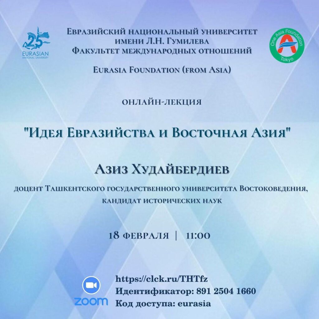 (Uzbek) E’lon. «Yevroosiyo hamkorlik g‘oyasi va Sharqiy Osiyo» mavzusidag ma’ruzaga taklif etamiz