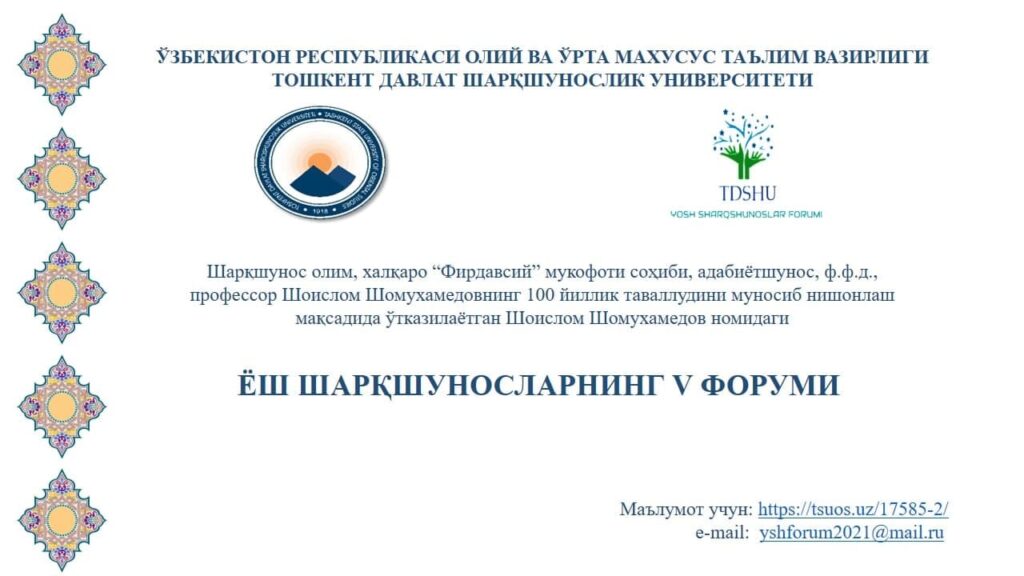 (Uzbek) “Yosh sharqshunoslarning V-forumi” tashkil etilmoqda