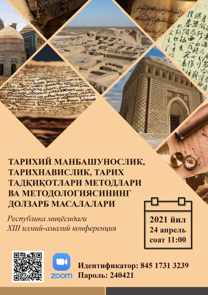 Приглашаем вас на научно-практическую онлайн-конференцию «Актуальные вопросы исторического источниковедения, историографии, методов и методологии исторических исследований», проводимую Ташкентским государственным университетом востоковедения 24 апреля 2021 года в 11:00.