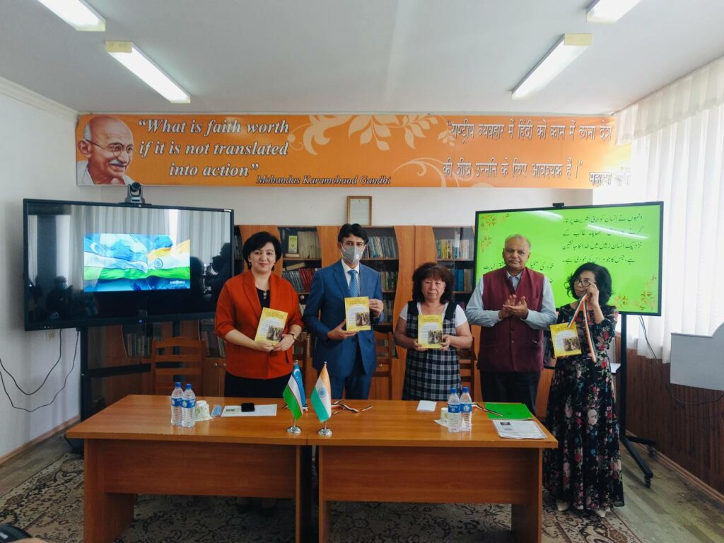 В своем приветственном слове ректор ТГУВ Гульчехра Рихсиева выразила благодарность Посольству Индии и Индийскому культурному центру имени Лала Бахадура Шастри за всестороннее, в том числе финансовое содействие в публикации поэтического сборника «Голиб. Избранные газели». Данный сборник вобрал в себя избранные газели, переведенные на узбекский язык доцентом кафедры «Языки Южной и Юго-Восточной Азии», кандидатом филологических наук Мухайё Абдурахмановой.