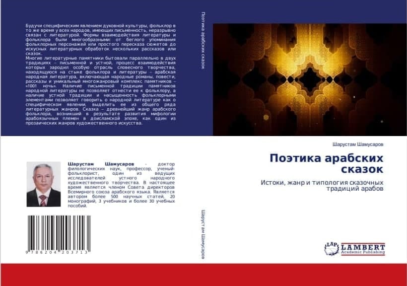 В издательстве «Ламберт» в Германии опубликована монография «Поэтика арабских сказок» заведующего кафедрой арабской филологии ТГУВ, доктора филологических наук, профессора Шорустама Шомусарова. Следует отметить, что данное исследование по типологии, жанровым особенностям признано в мировом востоковедении.