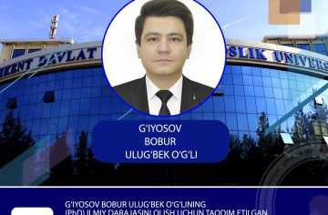 Защита диссертационной работы Абдулахаева Абдурашида Нодир угли на тему “Динамика и тенденции развития китайско-иранских отношений в условиях международных санкций”, подготовленной на соискание учёной степени доктора философии (PhD) по политическим наукам по специальности 23.00.04 – Политические проблемы международных отношений, глобального и регионального развития, состоится 2 августа 2025 года в...