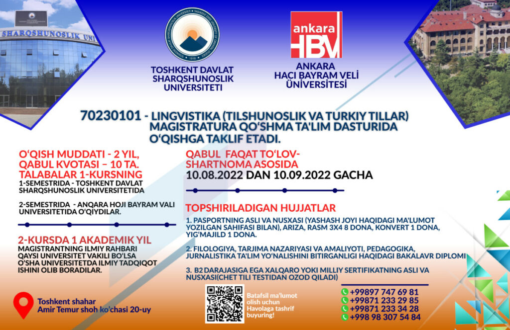 (Uzbek) QO’SHMA TA’LIM DASTURI MAGISTRATURA BOSQICHI BO’YICHA E’LON!!!