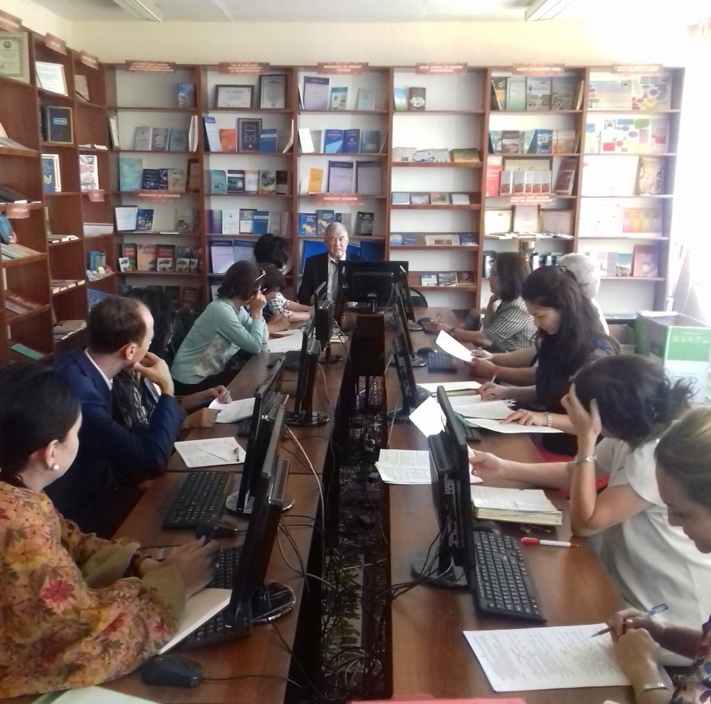 4 октября 2018 года состоялось очередное заседание научного центра Восточной лингвистики ТГИВ. В нем участвовали руководитель научного центра, доктор филологических наук, проф. А.Куранбеков (председатель), доктор филологических наук, проф. Х. Исламджанова (заместитель председателя), члены научного центра — кандидаты филолгических наук, доценты А.Каримов, Х.Алимова, С. Нурматов, М.Абдурахмонова, Д.Ахмедова, PhD Ким Наталья, Н.Холмурзаева, С. Косимова, руководители кафедр У.Мухибова, Ш.Шомусаров, У.Максумова и секретарь центра Ш.Тулаганова.