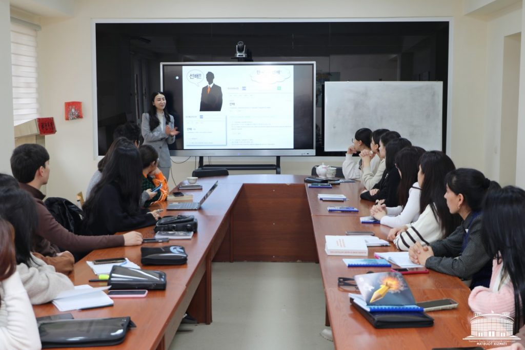 12 февраля 2025 года в ТГУВ профессор Университета Хонам (Республика Корея), PhD Дилноза Каланова провела открытую лекцию по дисциплине «Корейская лексикология» для магистрантов специальностей «Сравнительное языкознание», «Лингвистический перевод» и «Синхронный перевод». Лекция была организована в рамках курса «Межкультурная коммуникация».