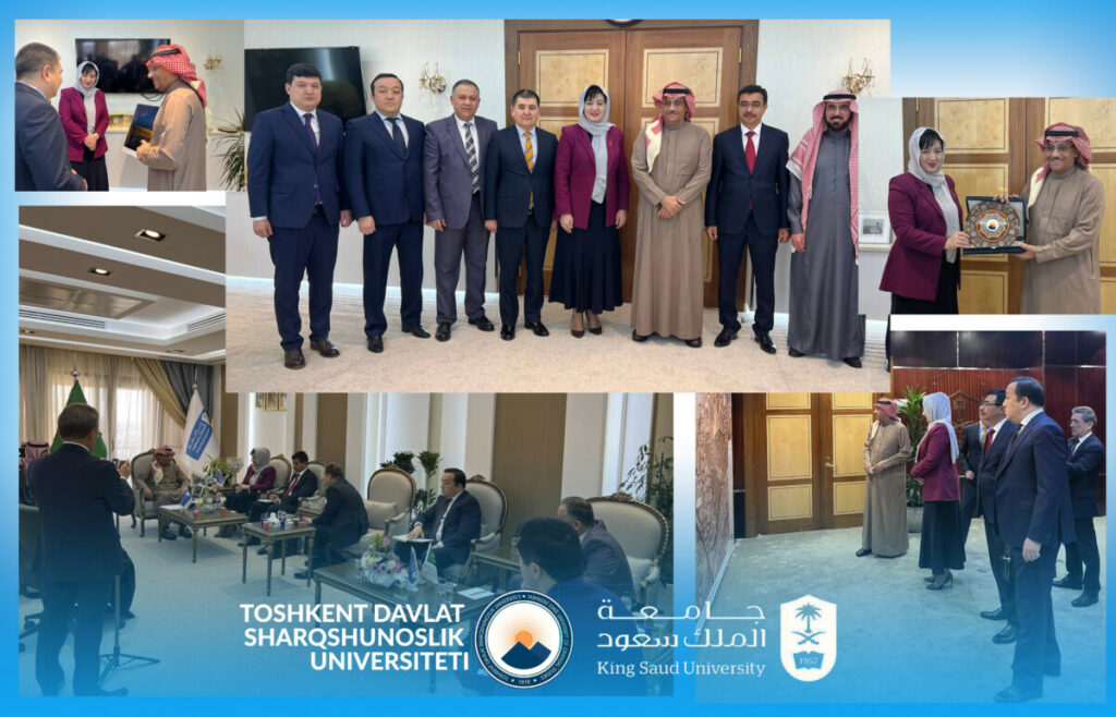 Saudiya Arabistonida bo‘lib turgan Toshkent davlat sharqshunoslik universiteti rektori G.Rixsiyeva boshchiligidagi delegatsiya Podshoh Saud universiteti rektori, doktor Badron al-Umar bilan uchrashuv o‘tkazdi.