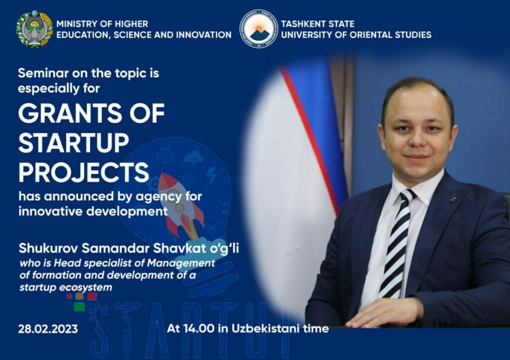 Sharqshunos talabalar va magistrantlar 28-fevral kuni soat 14:00da TDSHU asosiy binosining 1-qavatida «Startup loyihalari uchun grantlar» mavzusida seminar-trening bo’lib o’tadi!