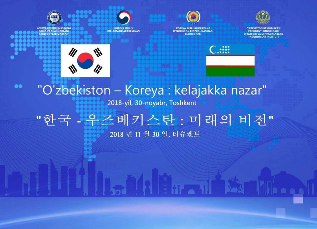 Joriy yilning 30-noyabr kuni Toshkent shahrida «O’zbekiston va Janubiy Koreya: kelajakka nigoh» mavzuida konferensiya bo’lib o’tdi. Tadbir O’zbekiston Respublikasi Prezidenti huzuridagi Strategik va Mintaqalararo Tadqiqotlar Instituti hamda Koreya Respublikasi Hanyan Universiteti huzuridagi Osiyo-Tinch Okeani Tadqiqotlari Markazi tomonidan tashkillashtirildi.