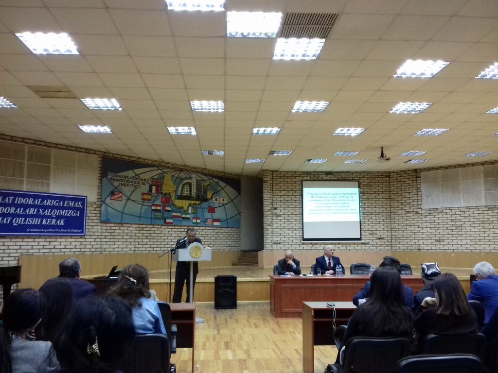 2019-yilning 8-yanvar kuni Toshkent davlat sharqshunoslik institutida «O’zbekiston Respublikasi Prezidenti Shavkat Mirziyoyevning  2018-yilning 28-dekabr kuni Oliy Majlisga taqdim etgan murojaatnomasida mamlakatimiz demokratik-innovatsion rivojlanishining yangi konseptual asoslarining belgilanishi» mavzusida ma’ruza o’tkazildi. Tadbirda institut rahbariyati, professor-o’qituvchilari hamda xodimlari ishtirok etdi. Ma’ruzani institutning «Ijtimoiy fanlar» kafedrasi mudiri, s.f.d., professor U.Idirov olib bordi.