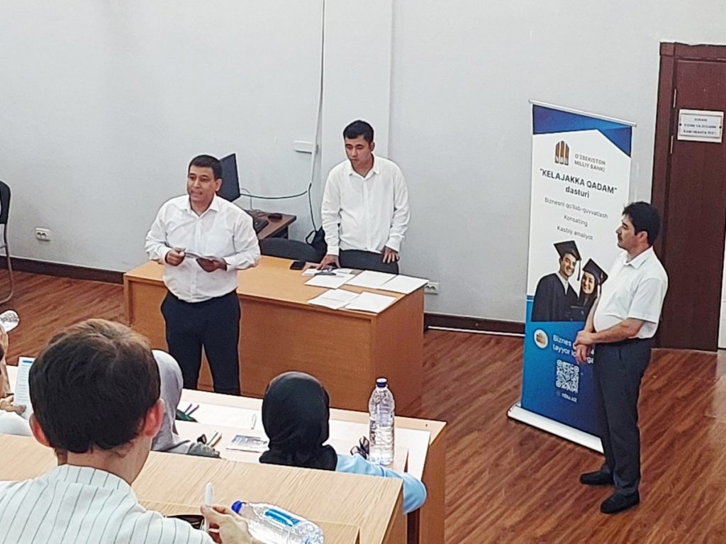 Tadbirda o‘z biznes g‘oyalarini amalga oshirish istagi bo‘lgan talabalarga biznes g‘oyani moliyalashtirish tartibi va imkoniyatlari haqida tushuntirish berildi. Bank tomonidan tavsiya qilingan namunaviy loyihalar tanishtirildi.