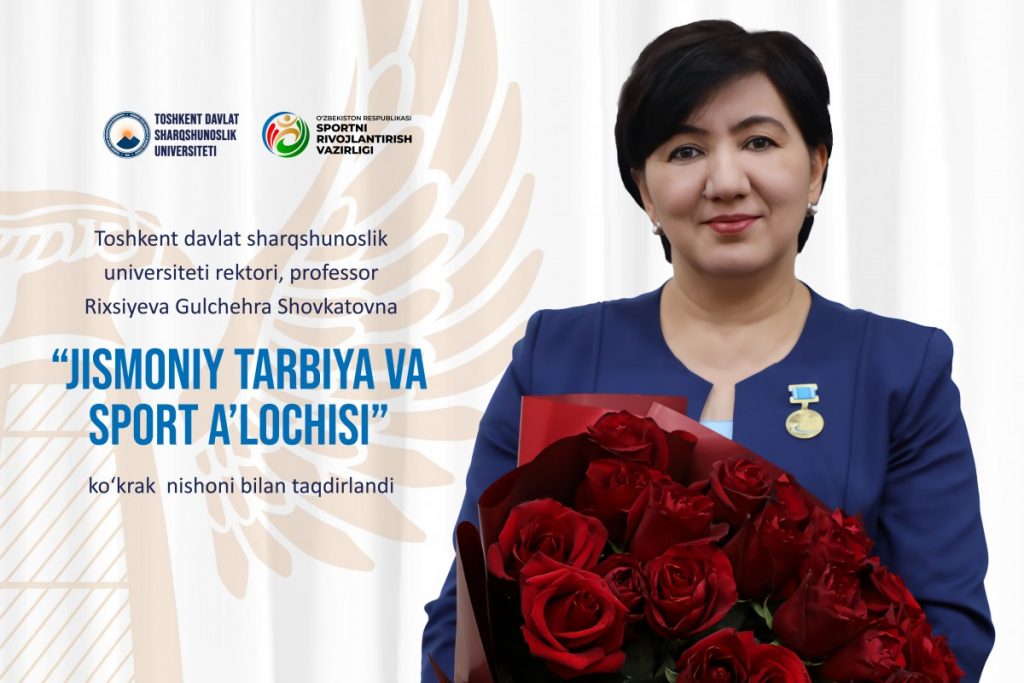 😄Toshkent davlat sharqshunoslik universiteti rektori, professor Rixsiyeva Gulchehra Shovkatovna “Jismoniy tarbiya va sport a’lochisi” koʻkrak nishoni bilan taqdirlandi