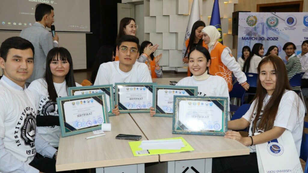 2022-yilning 30-martida O’zbekiston Respublikasi Vazirlar Mahkamasi huzuridagi Millatlararo munosabatlar va xorijiy mamlakatlar bilan do’stlik aloqalari qo’mitasi tomonidan tashkillashtirilgan tadbirda TDSHU «Koreya tarixi, madaniyati, siyosati va iqtisodiyoti» kafedrasi talabalari ishtirok etib, «Siz O’zbekiston va Koreya aloqalarini bilasizmi?» viktorinasida «Eng faol va quvnoq jamoa» nominatsiyasida g’oliblikni qo’lga kiritdilar.