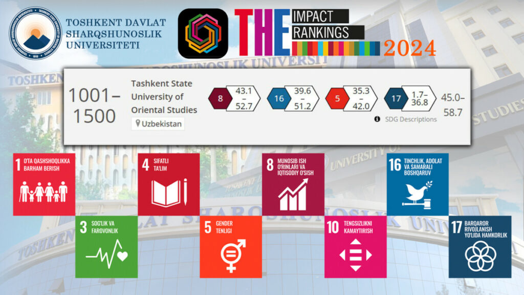 TDSHU Times Higher Education reyting agentligi tomonidan e’lon qilingan Impact Ranking – 2024 reytingida 1001-1500 o‘rinni qayd etdi