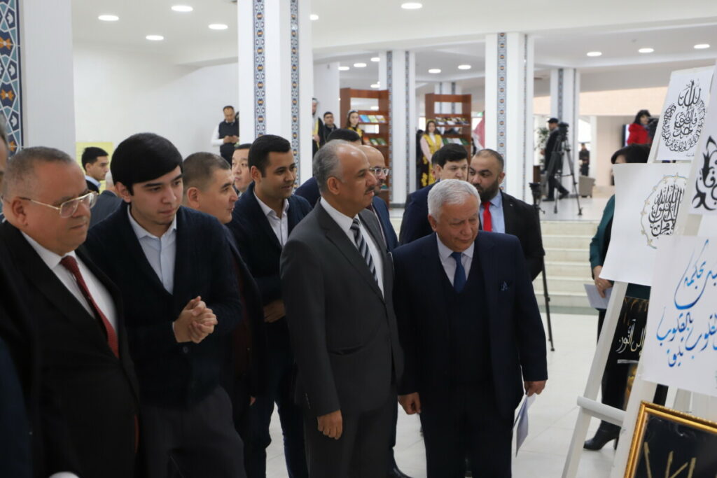 Tadbir doirasida universitet talabalari tomonidan bajarilgan arab yozuvi xattotlik san’ati hamda ijodiy ishlar namunalari ko’rgazmasi tashkil etildi.