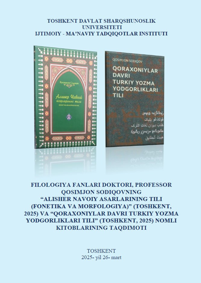 TDSHU professori Qosimjon Sodiqovning “Alisher Navoiy asarlarining tili (fonetika va morfologiya)” va “Qoraxoniylar davri turkiy yozma yodgorliklari tili” nomli kitoblarining taqdimotiga taklif etamiz.