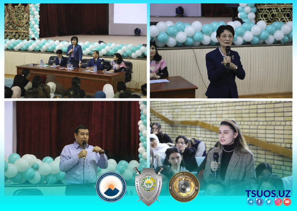 Unda O‘zbekiston Respublikasi Bosh prokuroroning birinchi o’rinbosari Svetlana Ortiqova, Toshkent to’qimachilik va yengil sanoat instituti professori Umida Rahmatullayeva, Toshkent shahar IIBB bo’lim boshlig’i Shukurov Abduvohid ishtirok etib, universitet talabalari bilan mazmunli suhbat qurdilar.