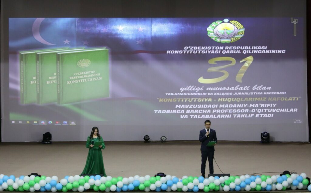2023-yil 5-dekabr kuni TDSHUda O‘zbekiston Respublikasi Konstitutsiyasi qabul qilinganining 31 yilligi munosabati bilan «Konstitutsiya – huquqlarimiz kafolati» mavzusidagi madaniy-ma’rifiy tadbir bo’lib o’tdi.