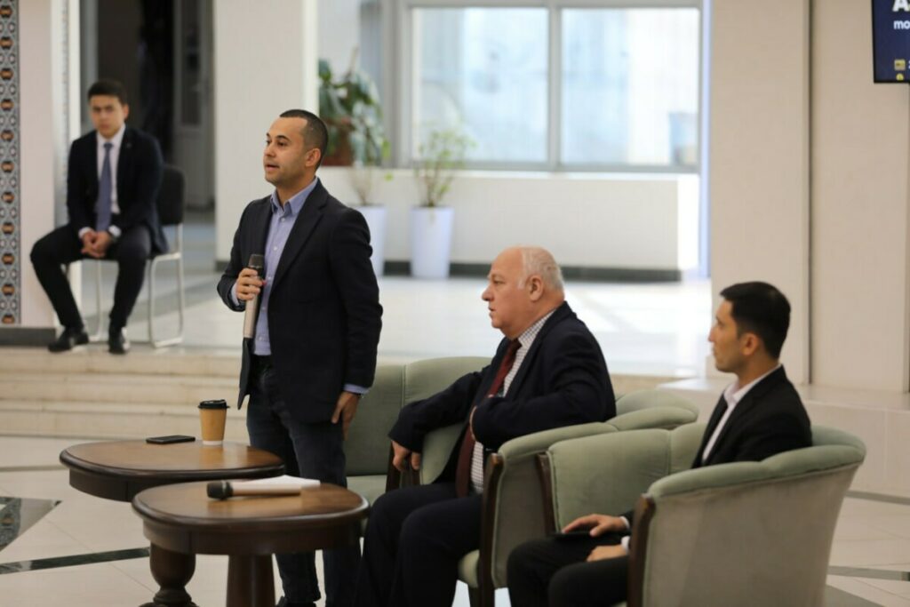 Suhbat davomida universitet bitiruvchisi Murodilla Alimbayev til o‘rganish va liderlik qobiliyati to‘g‘risida talabalarni qiziqtirgan savollarga javob berdi.
