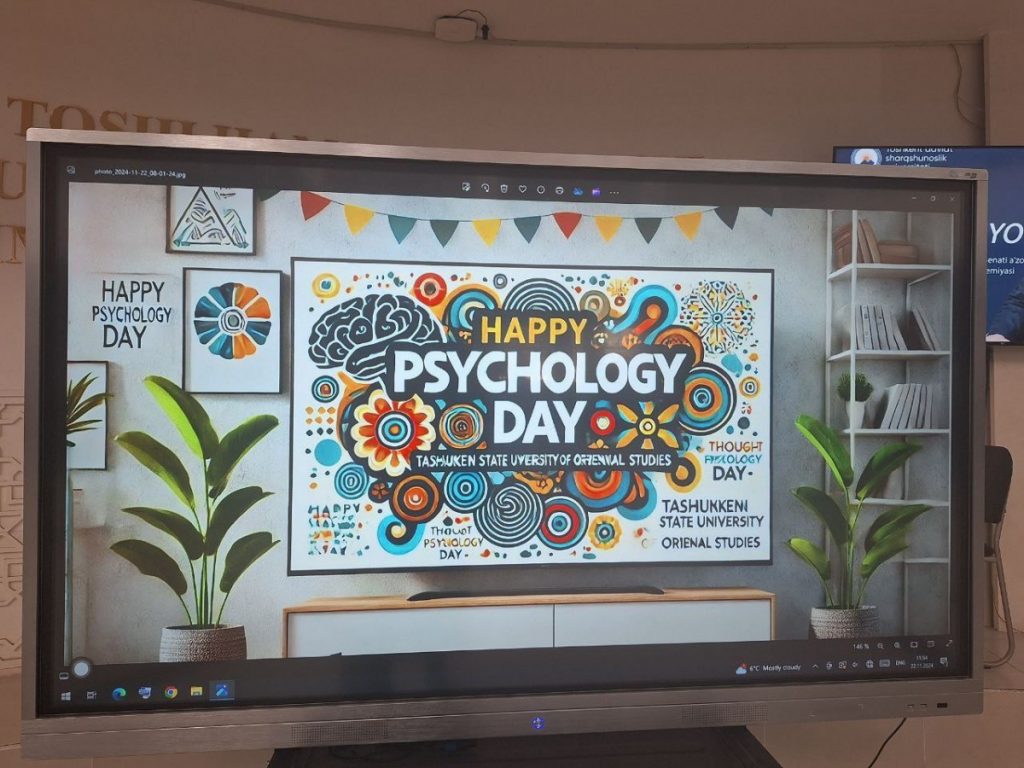 2024 yil 21-noyabr kuni “Xalqaro psixologlar kuni” munosbati bilan Amaliy fanlar fakulteti, Pedagogika va psixologiya kafedrasi tomonidan talabalar ishtirokida ilmiy davra suhbati tashkil etildi. Mazkur ilmiy davra suhbatiga Lomonosov nomli Moskva Davlat Universiteti psixologiya fakulteti yetakchi mutaxassisi xamda Moskva shahri «Matematik psixologiya» seminar rahbari, «Политическая психосемантика» ilmiy dasturi muallifi, psixologiya fanlari nomzodi, dotsent Mitina Olga Valentinovna «Психоматический метод анализа общественного сознания» mavzusidagi ilmiy ma’ruzasi bilan ishtirok etdi. Tadbir  qiziqarli savol-javoblar, muhokamalar va ilmiy mushohadalarga boy bo’ldi.
