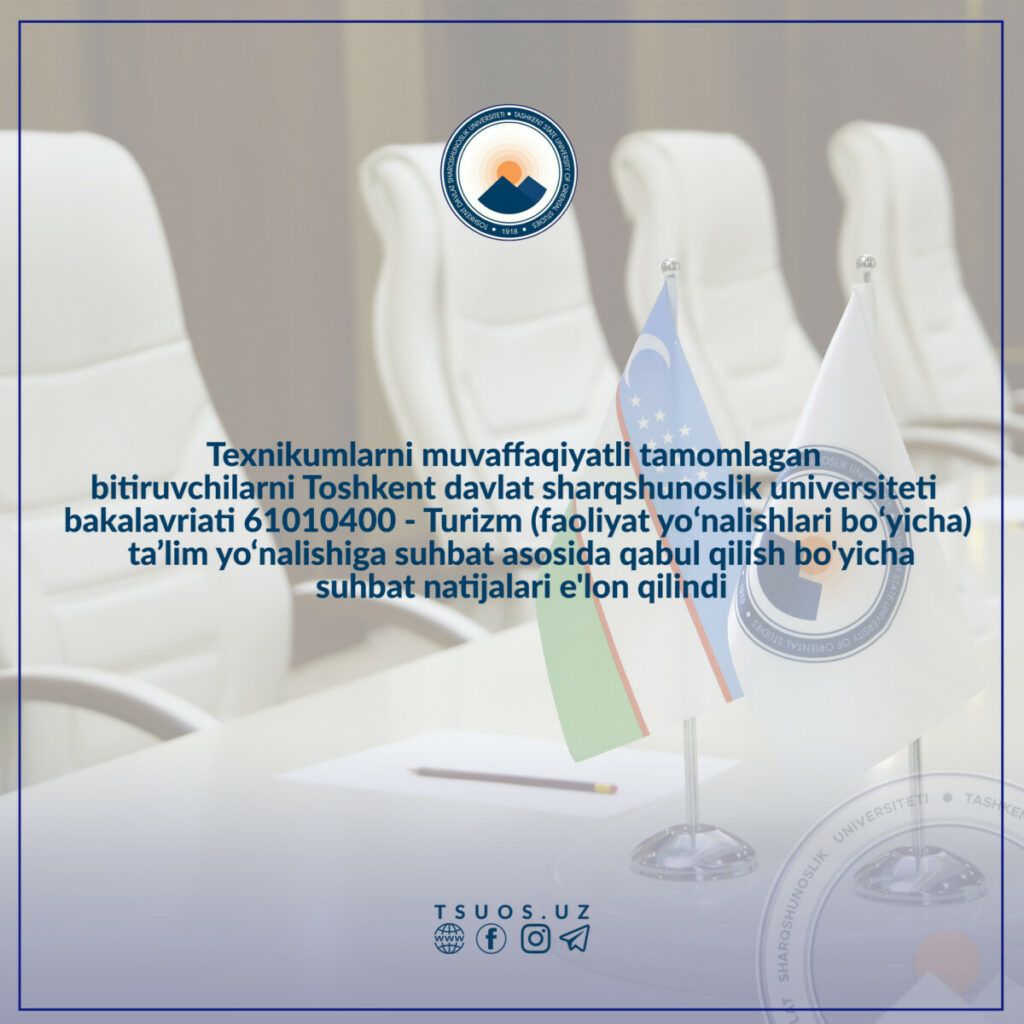 Texnikum bitiruvchilarini suhbat asosida qabul qilish bo’yicha natijalar e’lon qilindi
