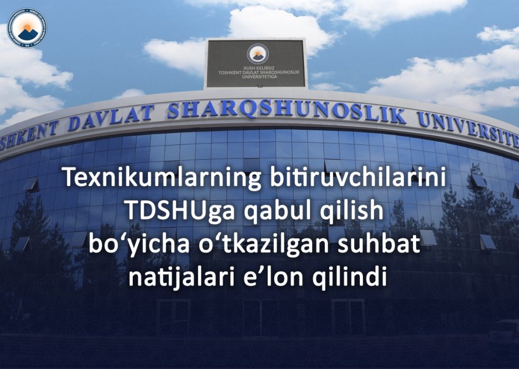 Texnikumlarning bitiruvchilarini TDSHUga qabul qilish bo‘yicha o‘tkazilgan suhbat natijalari e’lon qilindi